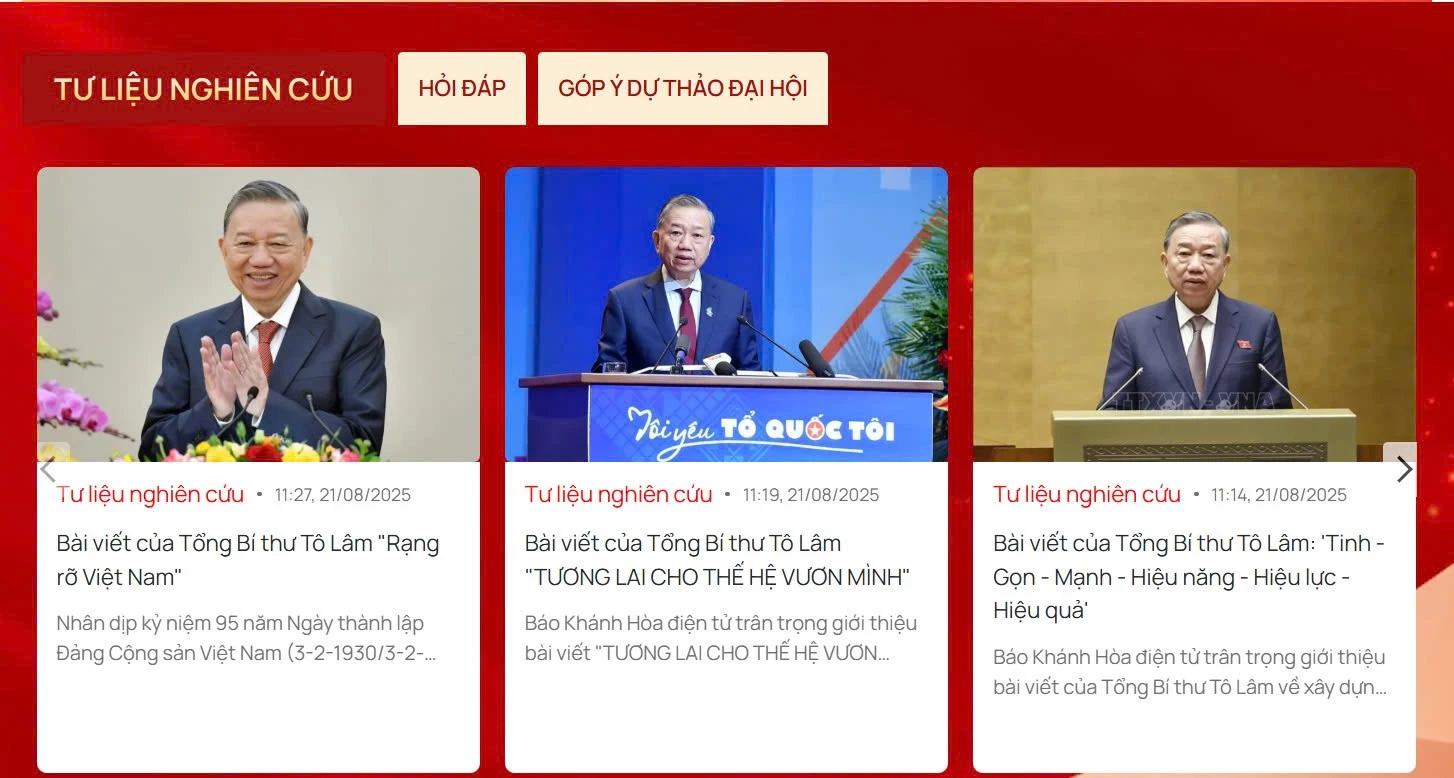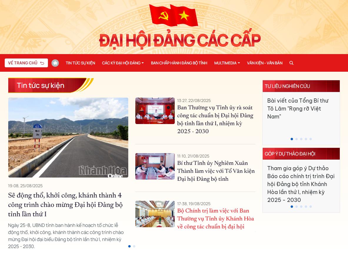 Ngày 28-8, Báo và Phát thanh, Truyền hình Khánh Hòa chính thức ra mắt chuyên trang Đại hội Đảng các cấp nhiệm kỳ 2025-2030 trên Báo Khánh Hòa điện tử. (Nhấn vào link để vào chuyên trang: https://baokhanhhoa.vn/dai-hoi-dang-cac-cap/)