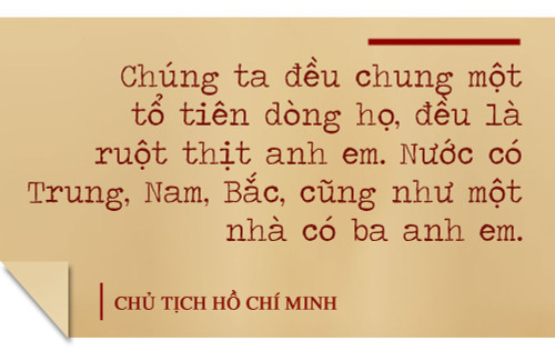 Sau khi đất nước giành được độc lập, ngày 23-10-1946, trong “Lời tuyên bố với quốc dân sau khi đi Pháp trở về”, Người nói: “Chúng ta đều chung một tổ tiên dòng họ, đều là ruột thịt anh em. Nước có Trung, Nam, Bắc, cũng như một nhà có ba anh em. Cũng như nước Pháp có vùng Noócmăngđi, Prôvăngxơ, Bôxơ. Không ai có thể chia rẽ con một nhà, không ai có thể chia rẽ nước Pháp, thì cũng không ai có thể chia rẽ nước Việt Nam ta”(1). Một sự khẳng định, một quyết tâm đến cùng về thống nhất non sông.
