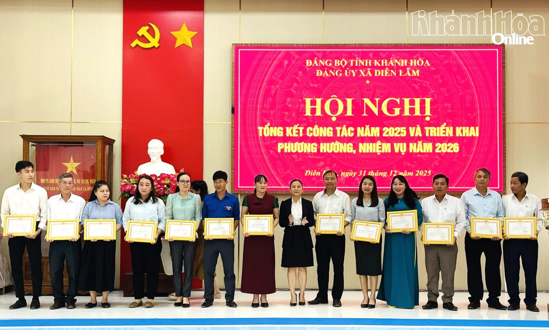 Năm 2026, Đảng bộ xã Diên Lâm tập trung thực hiện các nhiệm vụ, giải pháp gồm: Tiếp tục rà soát, sắp xếp, kiện toàn tổ chức bộ máy và công tác cán bộ, đảm bảo tinh gọn, hoạt động hiệu lực, hiệu quả, trong đó tập trung kiện toàn cấp ủy các chi bộ thôn nhiệm kỳ 2025 - 2027; tăng cường công tác kiểm tra, giám sát các tổ chức cơ sở đảng và đảng viên; tập trung lãnh đạo, chỉ đạo thực hiện các nhiệm vụ trọng tâm về phát triển kinh tế - xã hội; tăng cường công tác quản lý đất đai, khoáng sản, bảo vệ môi trường, trật tự xây dựng, đô thị... Một số chỉ tiêu đề ra là: Tổng giá trị sản phẩm trên địa bàn tăng 11%; tổng thu ngân sách nhà nước tăng 12%; thu nhập bình quân đầu người tăng 10%; tỷ lệ hộ nghèo theo chuẩn nghèo đa chiều còn 0,17%...