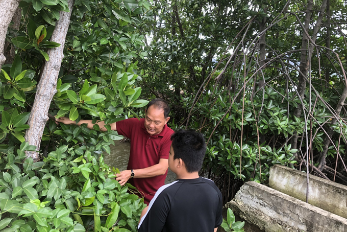 Ông Nguyễn Tấn Tài dạy cho con những kiến thức về cây đước |