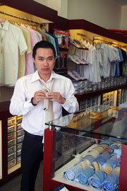 Hiện nay, trên thị trường, cà-vạt được bày bán khắp nơi. Từ cửa hàng thời trang cao cấp đến các gian hàng trong chợ hoặc tràn lan trên vỉa hè, đường phố. Cà-vạt cũng có đủ thương hiệu. Nổi tiếng trên thế giới có thương hiệu Dunhill, Bvlgari, Valentino, trong nước thì có thương hiệu An Phước, Việt Tiến, Nhà Bè, May 10... Với các thương hiệu nổi tiếng trên thế giới, ngoài việc đảm bảo tuyệt đối về chất liệu, cà-vạt còn mang đậm phong cách thời thượng với nhiều kiểu dáng, màu sắc và họa tiết độc đáo. Tuy nhiên, giá của những chiếc cà-vạt này khá cao, khoảng 500 ngàn đến trên dưới 1 triệu đồng một chiếc. Chị Thu Khánh, Giám đốc một công ty tư nhân ở TP. Nha Trang cho biết: “Tôi thường lựa cho chồng những chiếc cà-vạt có chất liệu 100% lụa tơ tằm, nhưng không phải sản phẩm của các thương hiệu nước ngoài vì giá quá đắt. Các thương hiệu trong nước như An Phước, Việt Tiến giá rẻ hơn nhưng chất lượng, mẫu mã, màu sắc cũng không thua kém hàng ngoại”. Quả thật, dạo qua các cửa hàng An Phước, Việt Tiến tại Nha Trang, chúng tôi thấy khá nhiều chiếc cà-vạt đẹp mắt, thậm chí còn phối sẵn với áo sơ mi để khách hàng dễ lựa chọn. Những chiếc cà-vạt ở đây có giá dao động khoảng 200 - 600 ngàn đồng. Nhân viên cửa hàng An Phước cho biết, cà-vạt cao cấp của An Phước làm bằng lụa tơ tằm nên giá hơi cao. Những chiếc cà-vạt làm bằng lụa nhân tạo thì giá rẻ hơn, khoảng dưới 200 ngàn đồng. Ngoài các cửa hàng có thương hiệu rõ ràng, trên thị trường còn bày bán các loại cà-vạt bình dân, chủ yếu là hàng Trung Quốc hoặc của một vài cơ sở may tư nhân nhỏ lẻ trong nước. Màu sắc của các loại cà-vạt bình dân cũng đa dạng nhưng không sắc nét và không mang tính thời trang, chất liệu hoàn toàn là sợi hóa học tổng hợp. Giá một chiếc cà-vạt này dưới 50 ngàn đồng.