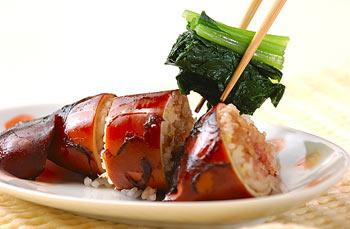 - Sau đó nhồi gạo và ngũ cốc vào bên trong mình con mực. Lần lượt cho nước, rượu, mirin, đường, xì dầu và gừng vào trong một cái nồi hay cái chảo, đun to lửa cho nồi nước sôi lên, cho lần lượt từng con mực đã nhồi gạo và ngũ cốc vào, vừa đun vừa dùng muôi tưới nước lên mình con mực. Khi thấy con mực chuyển màu đậy vung và đun nhỏ lửa thêm 30 – 40 phút nữa. Trong lúc đun thi thoảng lại lật mình con mực!