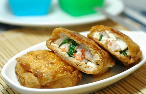 Dùng đậu rán làm vỏ như bánh bao rồi nhồi tôm thịt vào, vậy là bạn có một món mới lạ rồi.