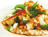 Mực làm sạch, khứa mắt lưới, xắt miếng vừa ăn.