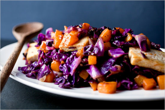 - Phi thơm gừng, tỏi, cho ngôp ngọt vào xào trước, kế tiếp cho bắp cải, xào chừng 6 phút, thêm chút nước và cuối cùng là thêm đậu phụ, nêm gia vị vừa ăn, bày ra đĩa.