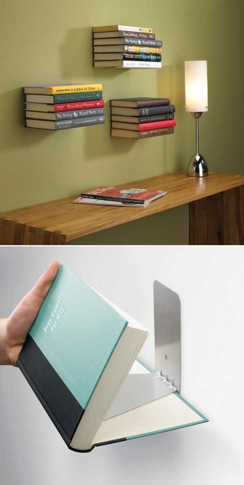 Loại kệ sách đầy sáng tạo này của nhà thiết kế Miron Lior có thiết kế cách điệu hình chữ L và làm bằng thép không gỉ. Chỉ cần khoan và bắt chặt chiếc giá vào tường là bạn đã có chiếc kệ sách có thể giữ được trọng lượng lên đến 15pound (gần 7 kg).