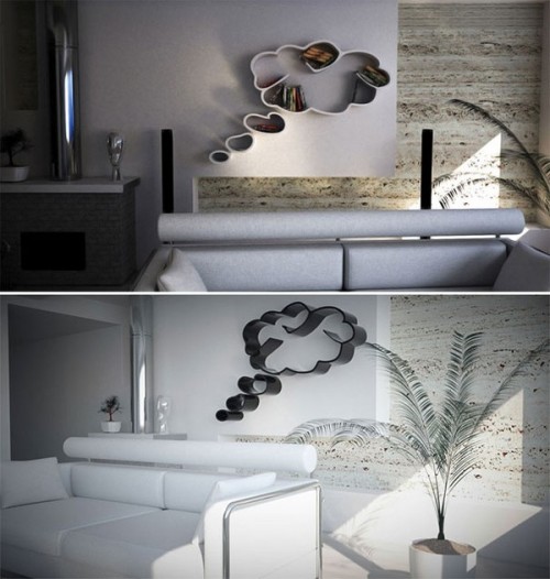 Thiết kế kệ sách "bồng bềnh" sẽ giúp làm mềm mại các góc cạnh khô khan của không gian sống. Đây sẽ món quà nội thất tuyệt vời cho những người ưa thích sự lãng mạn. Chiếc kệ sách cũng sẽ nhắc nhở chủ nhân rằng, đừng quên đọc sách để có thêm kiến thức, tạo hình ý tưởng và nhiều sáng tạo mới.