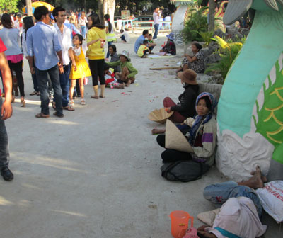 | Nhiều đối tượng ăn xin xuất hiện ở chùa Từ Vân. |