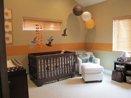 Một màu rất ít khi được sử dụng là màu cam. Nó không được sử dụng nhiều ngay cả với những không gian khác như: phòng khách, bếp. Màu cam tuy thuộc gam màu tươi tắn, bắt mắt, nhưng nó không phù hợp với trang trí trong phòng ngủ bởi nó quá nổi bật, sặc sỡ, dễ gây kích thích đến thị giác và tinh thần. Nhưng nếu khéo léo giảm bớt nhược điểm quá chói của nó thì cũng có thể tạo nên một căn phòng xinh xắn cho bé.