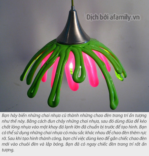Hãy vận dụng sẽ khéo léo của mình để biến những chiếc vỏ chai nhựa thành những món đồ trang trí hoặc nội thất thật đẹp và tiện ích.