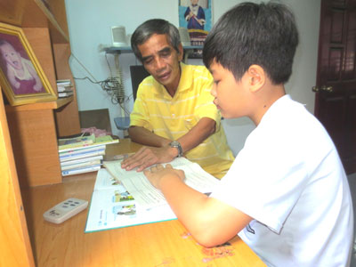 | Ông Tùng dạy học cho cháu. |