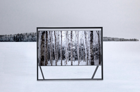 Chiếc khung tranh kim loại này thay thế chân đế thường thấy của các dòng TV,được chế tác thủ công từng phần, tích hợp trong đó hệ thống loa 120W, và cho phép dễ dàng di chuyển lên xuống và xoay màn hình TV. Mặt sau của S9 cũng được thiết kế liền khối, không có hệ thống dây cắm rối rắm mà thay thế là chỉ một sợi dây kết nối duy nhất đến một đế cắm duy nhất đến các thiết bị ngoại vị.