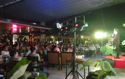 | Các chương trình "Trao lời yêu thương" tại KDL Champa thu hút nhiều người yêu nhạc. |