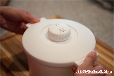 Để lò vi sóng ở nhiệt độ cao nhất trong khoảng 9 phút. Sau đó đưa về mức trung bình nấu thêm 3 phút nữa. Cơm sẽ chín sau 12 phút – nhanh hơn rất nhiều so với việc nấu bằng nồi cơm điện.