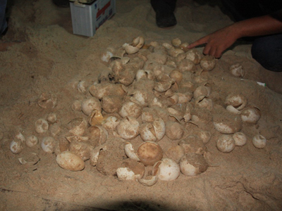 84 quả trứng rùa da ở Bãi Dài đã không thể nở vì không có phôi. |