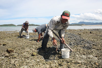 Tùy theo con nước, trên khu bãi triều thôn Xuân Đông (xã Vạn Hưng, huyện Vạn Ninh, tỉnh Khánh Hòa) có hàng chục người dân các địa phương trong huyện đến đào bắt sá sùng. Thời điểm săn sá sùng chủ yếu vào ban ngày, trong những ngày nước cạn.