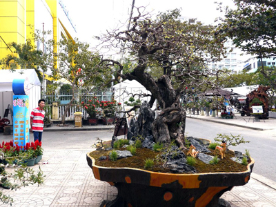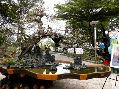 Tại Hội hoa xuân Giáp Ngọ TP. Nha Trang đang diễn ra, vườn cảnh Hai Tỉnh (phường Ninh Đa, thị xã Ninh Hòa, Khánh Hòa) đã đưa đến một cây me cổ thụ, có thế rất đẹp