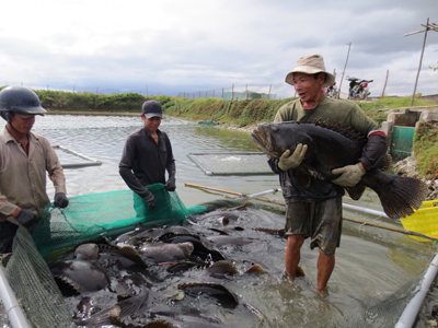 | Cá mú nghệ được người nuôi trồng Cam Ranh cung ứng trong dịp Tết. |