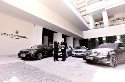Với những khách du lịch cao cấp, ấn tượng đầu tiên với khách sạn không chỉ được quyết định bởi cơ sở vật chất hay dịch vụ phòng, mà là thương hiệu và chất lượng của mẫu xe đưa đón. Ngoài ra, sự xuất hiện của những chiếc Mercedes-Benz sang trọng sẽ minh chứng cho đẳng cấp hàng đầu trong lĩnh vực khách sạn của InterContinental Nha Trang nói riêng và TP. Nha Trang nói chung. Năm nay, InterContinental Nha Trang trở thành khách sạn đầu tiên trang bị cả 3 dòng xe của Mercedes-Benz để phục vụ cho việc đưa đón du khách, bao gồm C-Class, E-Class và chiếc xe tốt nhất thế giới S-Class. Những khách hàng trẻ trung và năng động đã có C 300 AMG Plus, những thương gia hoặc gia đình sẽ hài lòng với chiếc E 200 lịch lãm và những khách VIP hoặc khách du lịch cao cấp sẽ được thỏa mãn tối đa với chiếc S 500 L.