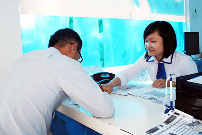 | Nhân viên Viễn thông Khánh Hòa hướng dẫn khách hàng đăng ký dịch vụ MyTV. |