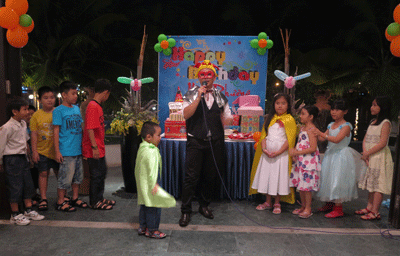 Chị Lộc Uyển, đường 2-4 Nha Trang cho biết: “Một lần chở con đi dự sinh nhật của bạn học lớp 1 tại Nhà hàng Champa Island, Nha Trang, tôi có ấn tượng với buổi tiệc vui nhộn đúng theo ý thích của các bé. Các cháu được thưởng thức các món ăn, vui chơi trong không khí vui tươi của thế giới tuổi thơ. Chú hề vừa xuất hiện đã khiến các cháu bật cười bởi bộ quần áo rộng thùng thình lạ mắt, chiếc mũ to quá cỡ và đặc biệt là cái mũi cà chua đỏ rực thật ngộ nghĩnh.”