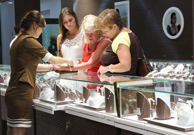 | Du khách tham quan và mua sắm ngọc trai tại Trung tâm Ngọc Trai Long Beach Peatl Nha Trang. |