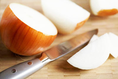 Ví dụ bạn có thể làm ướt củ hành, hoặc nhúng dao vào nước trước khi cắt...
