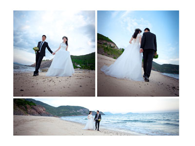 Cặp đôi Minh Đỉnh - Quỳnh Hương (Trần Quý Cáp, Nha Trang) vừa chụp bộ ảnh cưới ngoại cảnh Nha Trang. Những tấm hình với ánh nắng ngập tràn, biển xanh cát trắng làm hai bạn thực sự hài lòng. Quỳnh Hương cho biết: “Chúng tôi thích chụp ảnh ngoại cảnh vì những hình ảnh ngoài trời sinh động và đẹp hơn chụp trong phòng. Tuy giá cao nhưng chúng tôi rất hài lòng”.