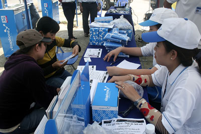 | Khách hàng đăng ký dịch vụ di động Vinaphone tại điểm bán hàng lưu động. |