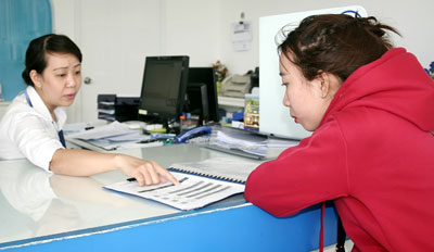 | Nhân viên Trung tâm Kinh doanh tư vấn gói cước dịch vụ Vinaphone cho khách hàng |