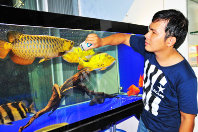 Căn phòng nhỏ chưa tới 20m2 của anh Hồ Quang Huy (đường Hồng Bàng, TP. Nha Trang) được vây kín bởi 5 bể cá lớn nhỏ. Anh Huy là một trong những người có nhiều kinh nghiệm nuôi cá Rồng ở Nha Trang. Sở hữu 2 con Huyết Long hơn 1 năm tuổi, anh phải chăm chút cho chúng từ ánh sáng đến nhiệt độ, thức ăn từng ngày. Một con cá Rồng được đánh giá đẹp phải có đầu góc cạnh, mắt không xệ, bụng không to, vây trước dài, bản đuôi to, râu chỉ thiên và quan trọng nhất là màu vảy phải đậm. Hiện nay, hầu hết các loại cá Rồng được nuôi ở Nha Trang đều nhập từ nước ngoài, chủ yếu từ Indonesia, Singapore và Malaysia. Riêng loại Ngân Long (màu trắng) có thể gây giống và nuôi ở Việt Nam nên giá thành khá rẻ, chỉ khoảng 200.000 đồng là có thể sở hữu được một con Ngân Long.