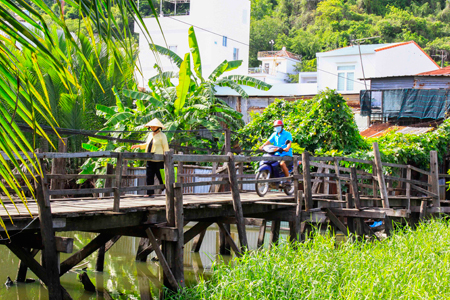 Sau 20 năm sử dụng, cầu gỗ dân sinh bắc qua sông Kim Bồng nối thông từ đường Phương Sài với khu dân cư Vĩnh Điềm (phường Ngọc Hiệp, TP. Nha Trang) đã xuống cấp. Anh Trần Văn Trang (khu dân cư Vĩnh Điềm) cho biết: "Tôi sống ở đây đã gần 10 năm.