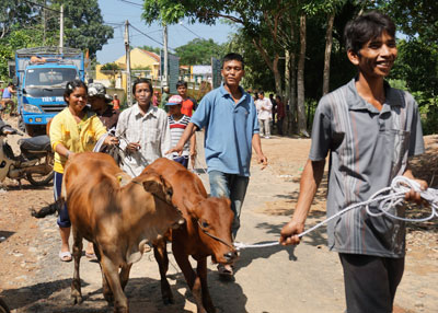 Nhờ nguồn kinh phí hỗ trợ của Ngân hàng TMCP Ngoại thương Việt Nam (Vietcombank) Chi nhánh Khánh Hòa, 100 hộ đồng bào dân tộc thiểu số nghèo của huyện miền núi Khánh Sơn được tặng bò cái sinh sản nhằm tạo sinh kế ổn định cuộc sống.