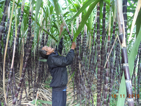 Niên vụ 2014 - 2015, toàn huyện Khánh Sơn trồng khoảng 300ha mía tím. Một số diện tích trồng lúa nước và cây hoa màu kém hiệu quả cũng được bà con chuyển sang trồng mía. Thời điểm đầu vụ, giá bán cao, những ruộng mía trồng sớm, chăm sóc tốt, người dân bán từ 15 - 25 triệu đồng/sào. Tuy nhiên, từ khoảng cuối tháng 10 trở lại đây, việc tiêu thụ mía chững lại, giá bán giảm 30 - 50% so với đầu vụ, thậm chí những diện tích mía kém phát triển chỉ còn 4 - 5 triệu đồng/sào. Một số hộ chuyển sang bán mía giống mong lấy lại ít vốn đầu tư. Mặc dù đã cuối vụ, nhưng hiện nay, toàn huyện còn gần 50% diện tích mía chưa thu hoạch vì chưa có người thu mua.