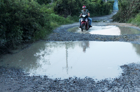 | Người dân gặp không ít khó khăn khi đi lại trên con đường đầy ổ voi |