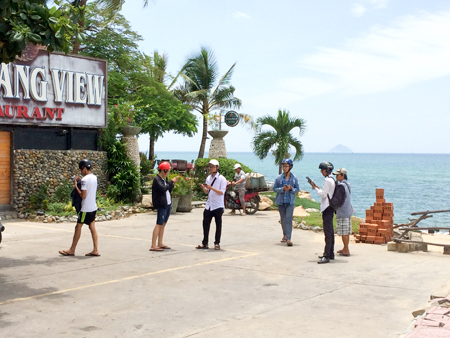 | Các bạn trẻ tìm bắt Pokémon tại khu vực bờ biển đường Trần Phú |