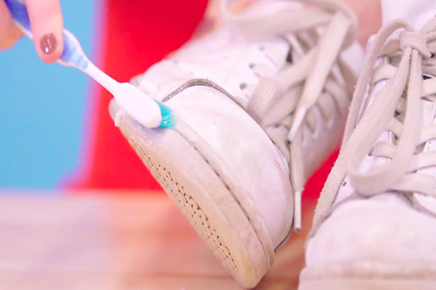 Lấy một chiếc bàn chải đánh răng cũ, nhúng vào hỗn hợp rồi đánh sạch những vết bẩn, vết ố trên giày. Lấy khăn bông lau sạch lại, bạn sẽ thấy đôi giày của bạn trắng tinh như mới trong chốc lát.