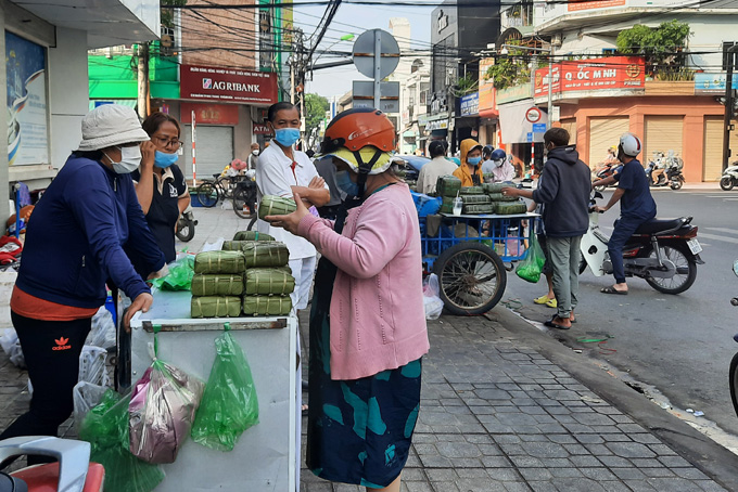 Góc phố Thống Nhất - Lê Thành Phương nhộn nhịp mua bán bánh tét, bánh chưng ngày giáp Tết.