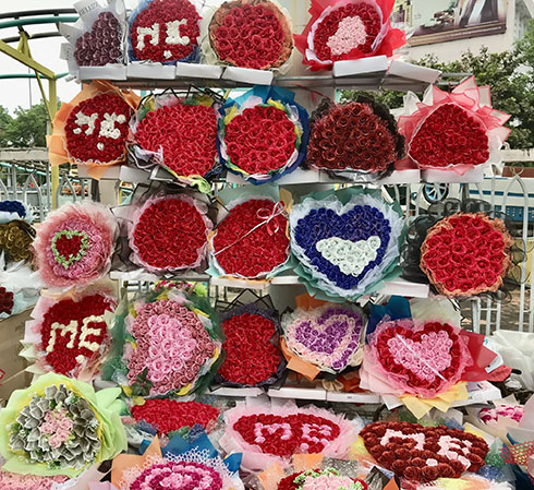 Ngoài hoa tươi, ghi nhận trên các tuyến đường chính, khu vực trung tâm TP. Nha Trang, các loại hoa làm bằng chất liệu sáp, giấy kim tuyến, mạ vàng, hoa tươi sấy khô, hoa lụa cũng được bày bán khá nhiều và rất bắt mắt; nhất là hoa hồng. Các loại hoa này có giá dao động từ 15.000 - 25.000 đồng/bông thành phẩm; mỗi bó bình quân từ 300.000 đến 1 triệu đồng tùy loại, số lượng bông…