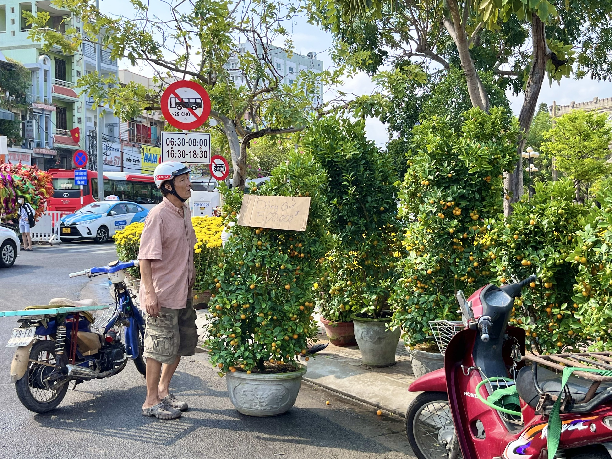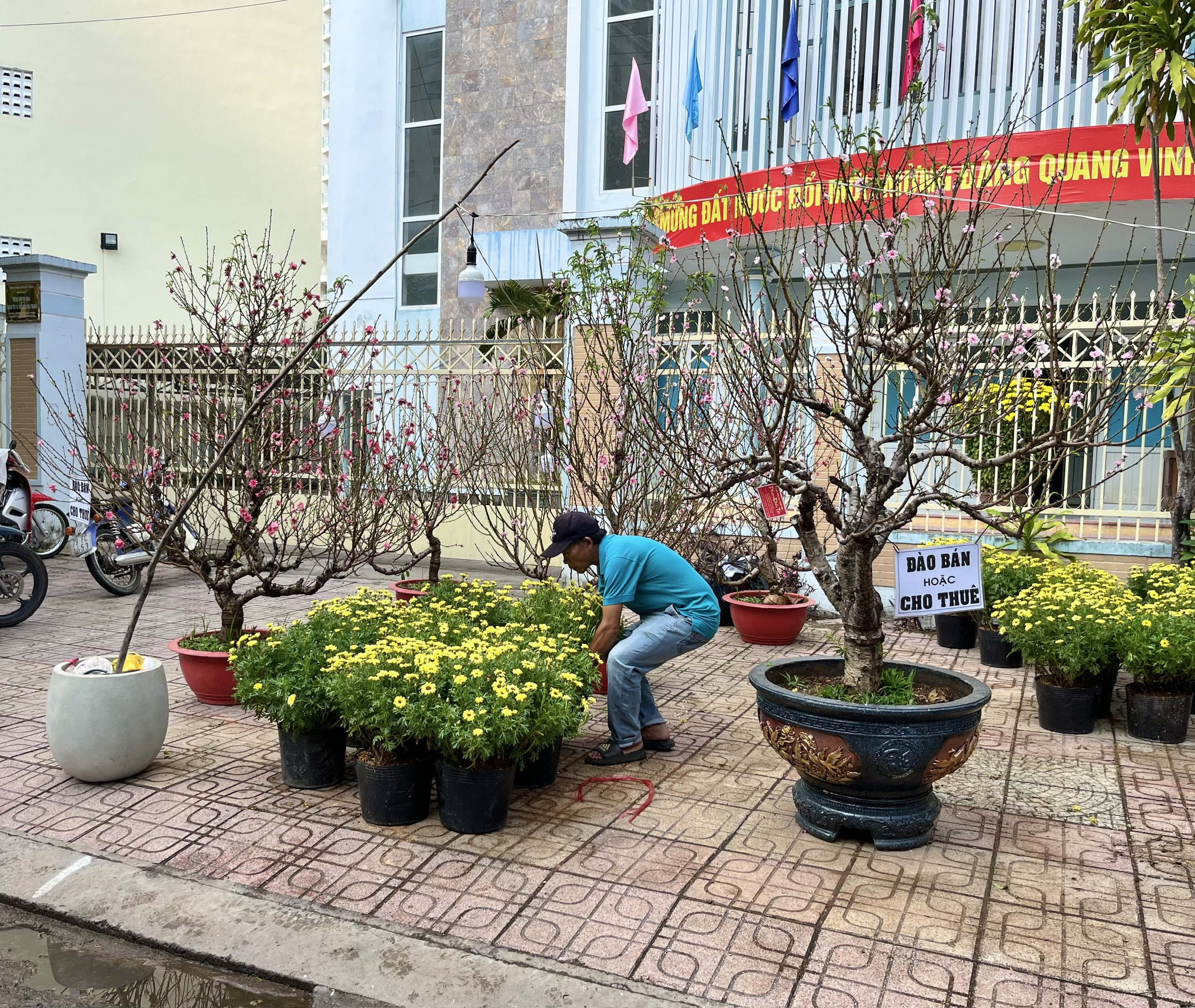 Dọc các tuyến đường của TP. Nha Trang như Lê Thánh Tôn, Tô Hiến Thành, Yersin, Đinh Tiên Hoàng, Thái Nguyên... ngập tràn sắc mai vàng rực rỡ suốt cả tuần nay. Từ ngày 18 Chạp, các nhà vườn đã đưa mai ra phố, song lượng mua không đáng kể. Thuê vị trí dựng lều bán mai ngay khu vực Ngã 6, ông Nguyễn Văn Mười (56 tuổi, thị xã An Nhơn, Bình Định) cho biết, "Năm nay giá mai không tăng, thậm chí một số nhà vườn đã giảm đến 30%. Những năm trước tôi bán 400-500 chậu, còn năm nay mới bán được khoảng 150 chậu".