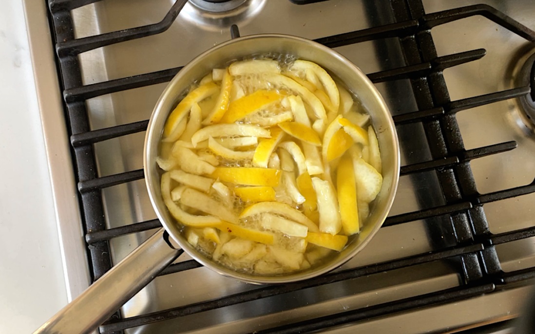 - Đun sôi một lượng nước phù hợp với số lượng vỏ chanh bạn có.