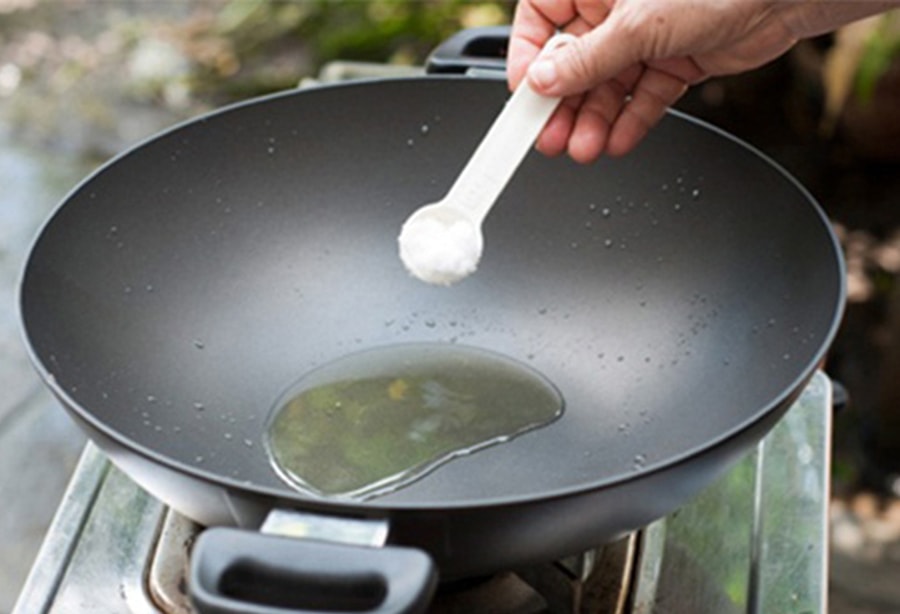 Đây là cách vô cùng đơn giản và dễ thực hiện. Đầu tiên, chúng ta cho dầu vào chảo, chờ dầu thật nóng rồi rắc đều một ít muối, sau đó cho thực phẩm vào chiên.