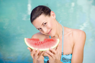 - Dùng một cốc nước dưa hấu ép, lấy bông gòn thấm đều lên da mặt. Nằm thư giãn trong vòng 15 phút, sau đó rửa sạch mặt với nước thường. Mặt nạ dưa hấu có thể giúp làn da vốn đang bị bức bí từng ngày có thể được "xả hơi" nhanh chóng.