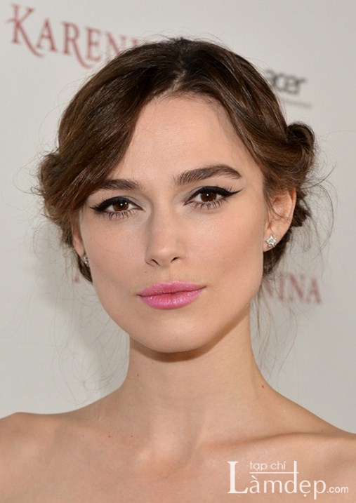 Keira Knightleychọn kết hợp sắc màu môi hồng băng giá với kiểu kẻ mắt có cánh - trông thật ấn tượng và cuốn hút.