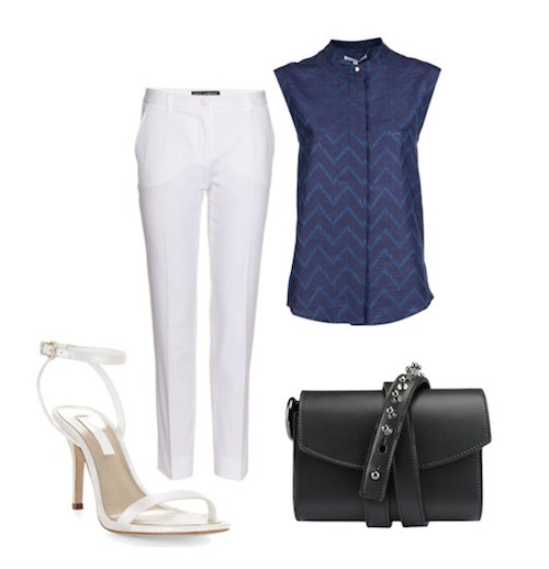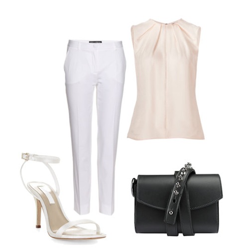 Quần trouser trắng là một món đồ "phải có" của hầu hết phụ nữ công sở, kết hợp cùng một món đồ quen mặt nữa là sơ mi lụa sát nách với tông màu sáng, nhẹ nhàng. Chắc chắn, bạn sẽ thấy mình thật mềm mại, thanh lịch ngày đầu tuần.