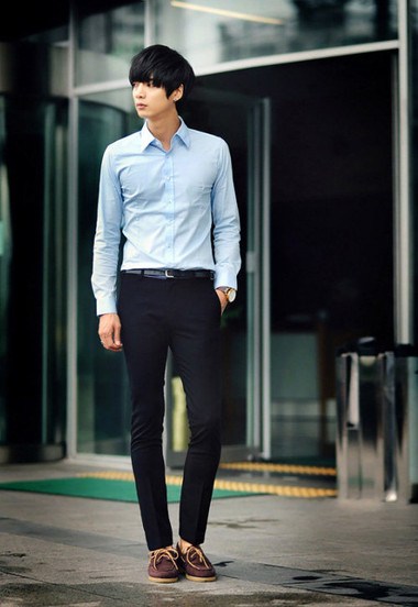 - Trang phục được xem là phổ biến nhất cho những chàng trai có chiều cao khiêm tốn đó chính là mặc những bộ quần áo cùng tông màu với chiếc quần eo cao để nhìn đôi chân dài hơn. Tuy nhiên, điều này không có nghĩa là bạn không được làm phong phú thêm màu sắc cho trang phục của mình.