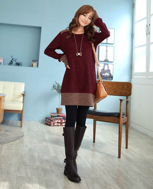 Nhiều bạn gái cho rằng, váy len không dành cho những tín đồ thời trang phong cách phủi bụi. Điều này không đúng. Một chiếc váy len suông gam trầm kết hợp cùng boots sẽ mang lại cho bạn vẻ mạnh mẽ và cá tính. Tuy vào vóc dáng mà bạn nên chọn boots sao cho phù hợp. Nếu bạn thấp và đậm người, hãy kết hợp váy len suông với ankle boots và ngược lại, nếu vóc dáng cân đối, bạn có thể thoải mái lựa chọn giữa ankle boots và boots cổ lửng.