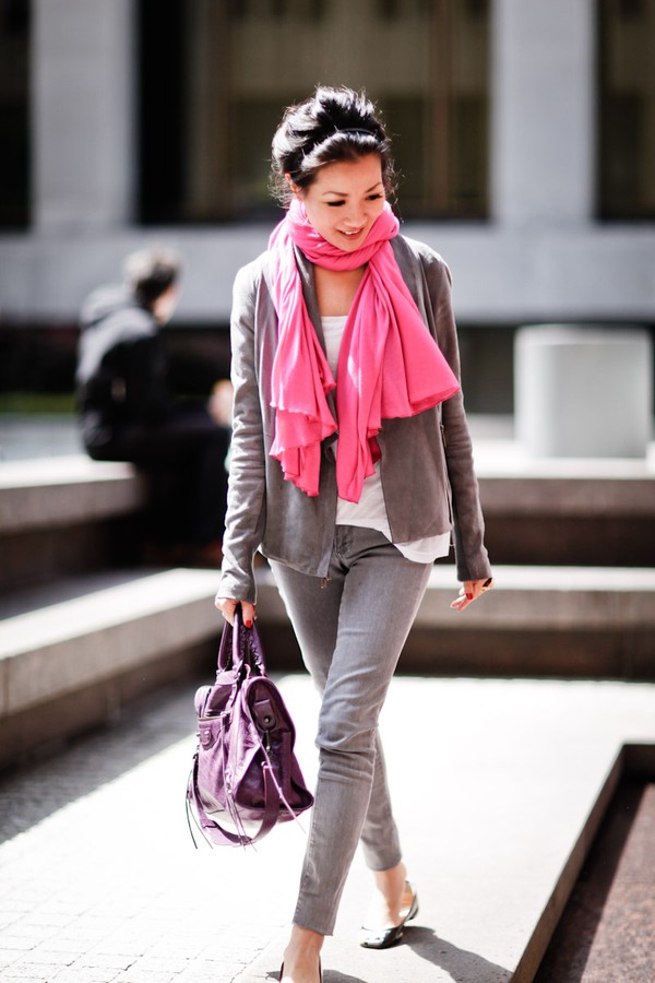 Nếu bạn thấy hình ảnh những chiếc khăn họa tiết đã trở nên quá quen thuộc hay đơn giản là nó không dành cho bạn, thì hãy dành thời gian cho những chiếc khăn trơn màu sáng thử xem. Trông đơn giản là thế mà nó đã từng là xu hướng được yêu thích của làng thời trang.