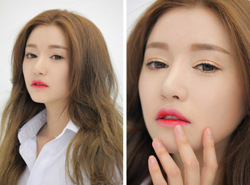 - Điểm cần lưu ý là khi tô son kiểu này, bạn nên nhớ màu đậm cần được tô trong lòng, màu nhạt tán đều phía ngoài.