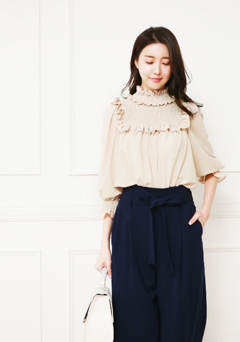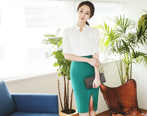 Những chiếc sơ mi vai bồng sẽ mix hợp gu nhất là chân váy bút chì hoặc chân váy xoè nữ tính, phần vai bồng thược được thiết bằng chất liệu vài khác thân áo để tạo điểm nhất khác biệt